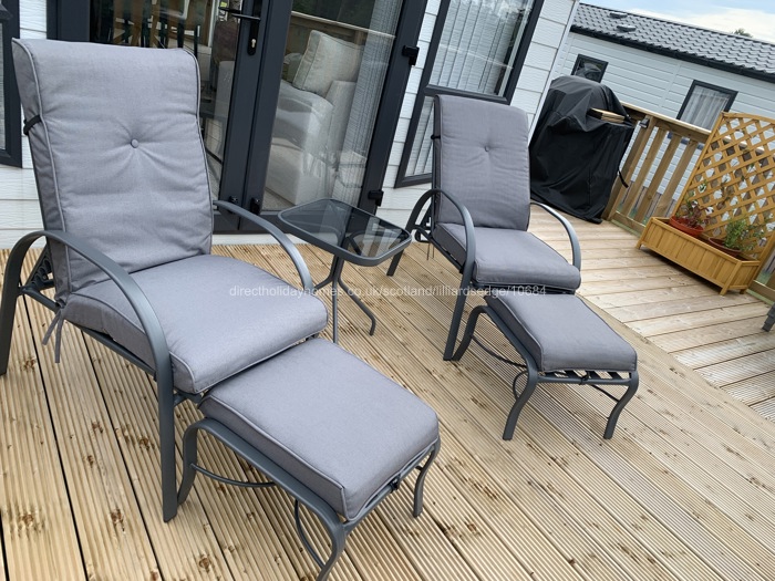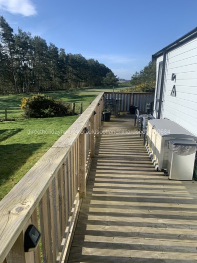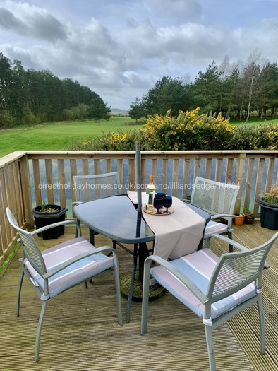 Outside we have a large, gated decking complete with ample dining and lounger seating, which offers magnificent views over the holiday park, golf course and hills beyond. A 5 minute walk will take you to the restaurant/bar and shop.