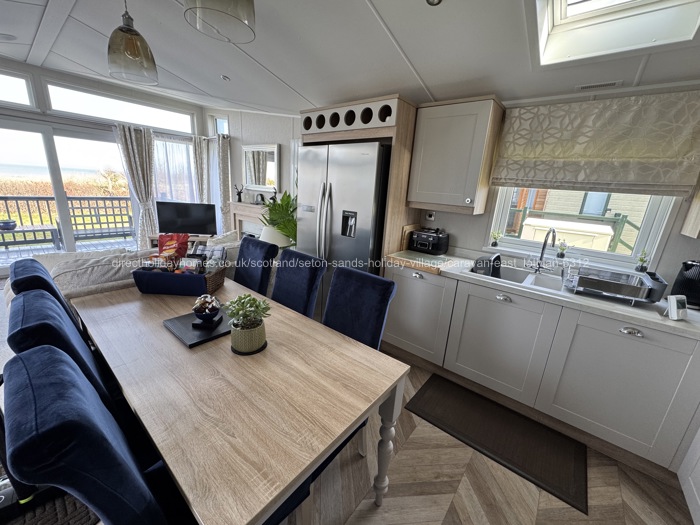 2 bedroom Willerby Vogue Lodge Classique for hire at Seton Sands Holiday Village, with full wraparound gated decking, private parking and picture postcard sea views.