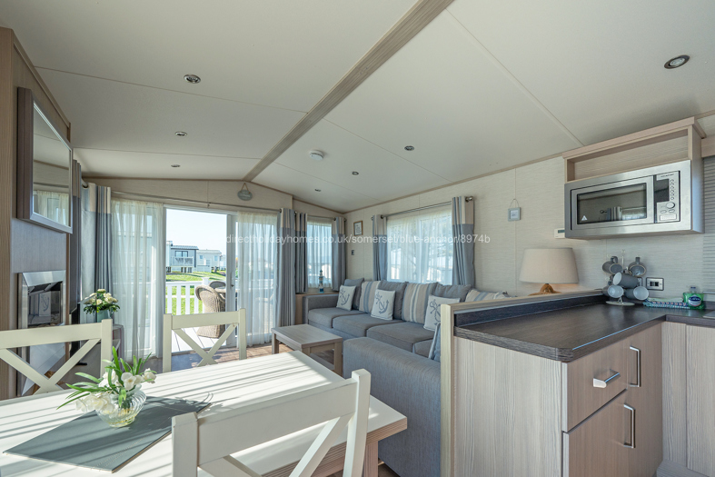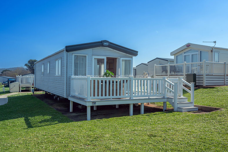Fabulous, elevated, pet friendly holiday caravan to let on Hoburne Blue Anchor in Somerset, offering sea views to the front and steam trains chuffing a very short distance behind.