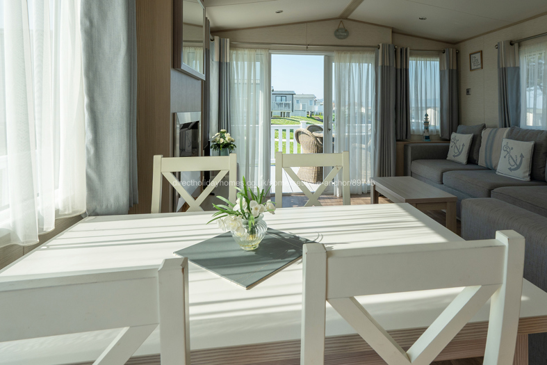 Our elevated, sea view caravan with outdoor seating is ideal for your well-deserved holiday break and available for full weeks.