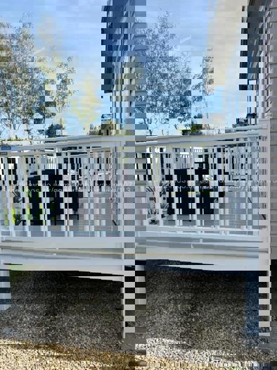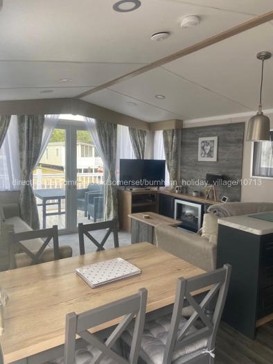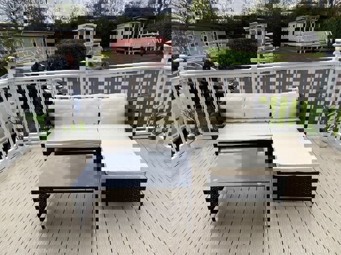 Within the lounge is a gas fire, 32” Smart TV and a DVD player, along with lots of board games to keep your little ones amused if the weather isn’t so great. From the lounge, patio doors open onto the front decking, allowing extra space. There is also a side decking.