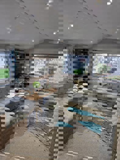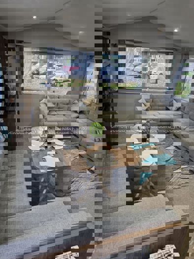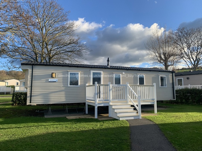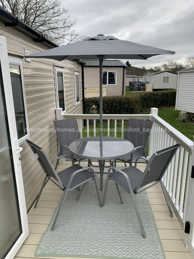 Our caravan is located in a peaceful area of Doniford Bay Holiday Park, complimented by a charming, planted area. We are situated on an end plot with a grassed area to the side.