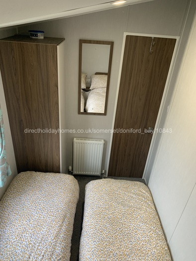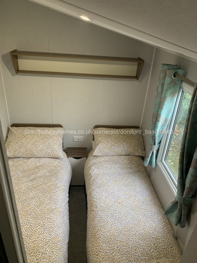 Our Doniford Bay caravan for hire, sleeps up to 8 guests, in one double bedroom, two twin bedded rooms and a sofa bed in the lounge.