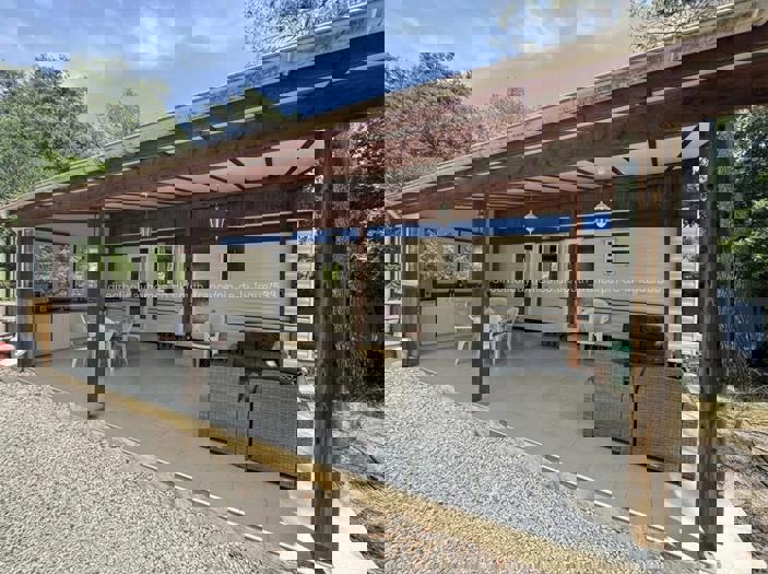 There is a generous amount of outside furniture including tables, chairs and sunbeds; all with cushions. The plots have sunny and shaded areas under the trees for relaxing. There is also shaded private parking.