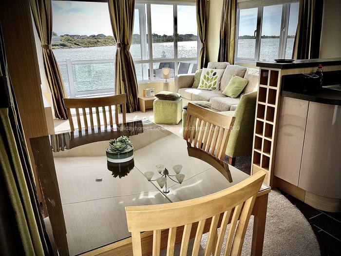 Our luxurious holiday home to let on Church Farm Holiday Village near Chichester, is situated directly on the lagoon so has waterside views from all aspects.