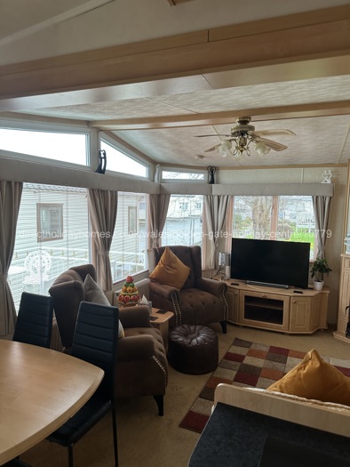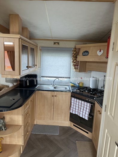 The caravan offers three bedrooms, comprising one double bedroom and two twin bedrooms, making it perfect for families. The fully fitted kitchen includes a full-size fridge freezer, microwave, air fryer, and all essential equipment for comfortable self-catering. Guests can also enjoy free Wi-Fi with Alexa.