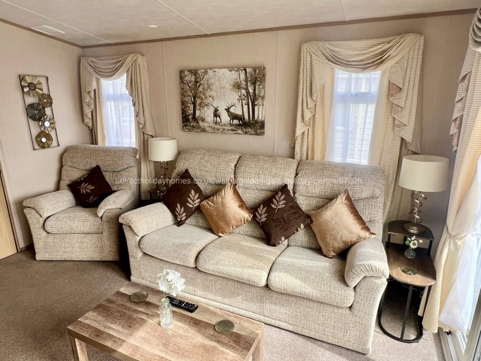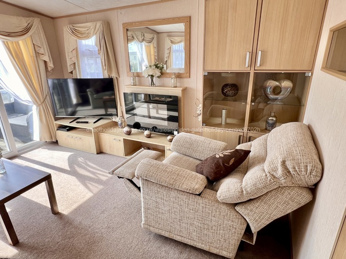 Our fabulous ABI Kentmere is sited on a prime front row plot at Golden Gate Holiday Centre, and offers gas central heating and double glazing.
