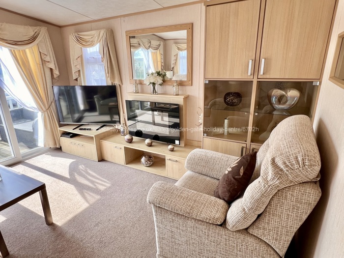 Our ABI Kentmere is a spacious 40ft x 12ft & has been furnished and equipped to our usual very high standards. There is full gas central heating and double glazing throughout. Sited on a front row plot on Golden Gate Holiday Centre with reserved parking bay for 2 small cars alongside.