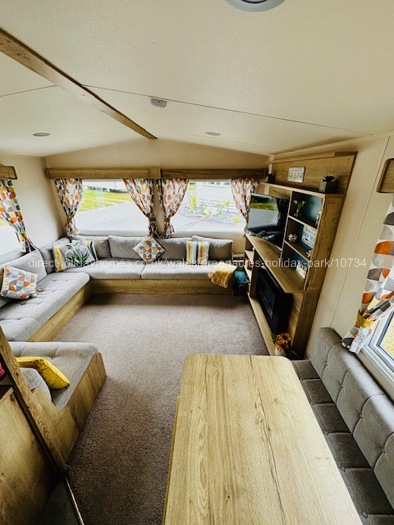 The lounge offers a large open seating area for the family to relax and enjoy the 43” Smart TV, and as there is mobile broadband, you could even catch up on your favourite programme or binge on a series. There is an LED electric fire too. The dining area can also be used for the odd game of cards, Uno or even a jigsaw, which you will find on the shelf.