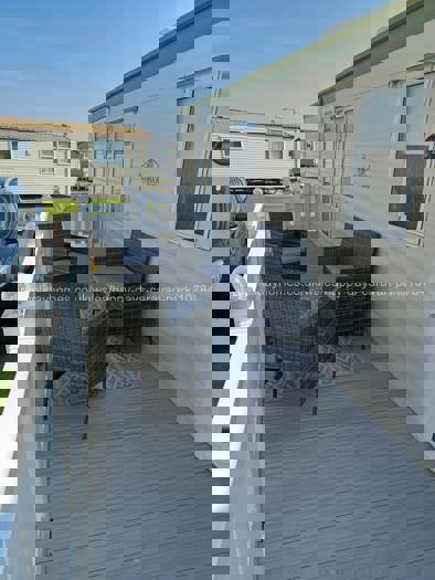 Our comfortable holiday caravan at Happy Days Holiday Park, Towyn features a large decked area with table and chairs and a secure locking gate, making it ideal for families with younger children. The decking also provides a designated outdoor smoking area.