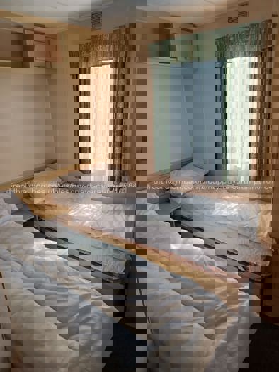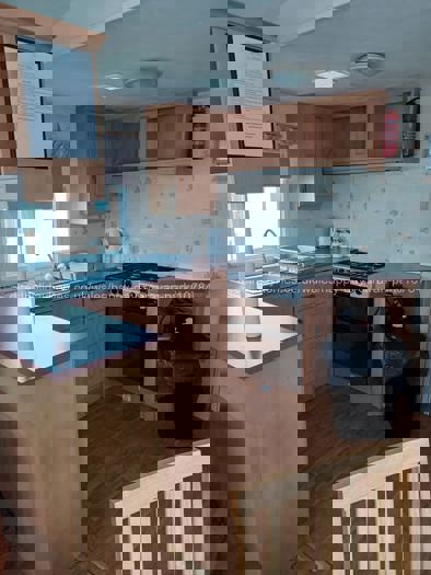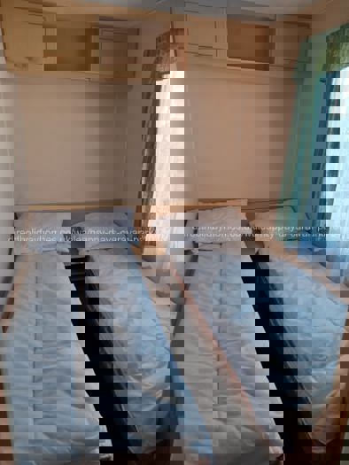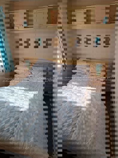 The caravan offers three bedrooms, comprising one double bedroom with a memory foam mattress and two twin bedrooms, along with a shower room and a separate toilet. The spacious lounge includes a pull-out double sofa bed, providing flexible sleeping arrangements. The well-equipped kitchen offers everything needed for a self-catering holiday.