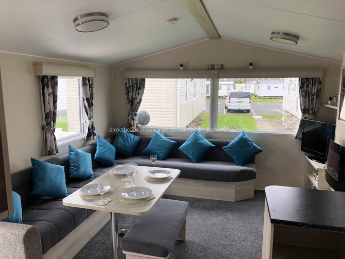 My double glazed and central heated caravan for hire at Kiln Park, is located very close to the kids' park area and outdoor pool.