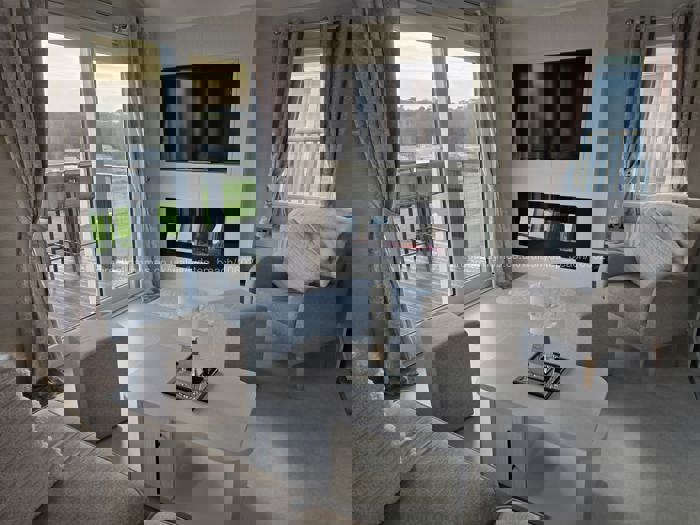 This spacious, 14 x 42ft, double glazed and central heated caravan, is south-facing and situated in a prime, peaceful location.