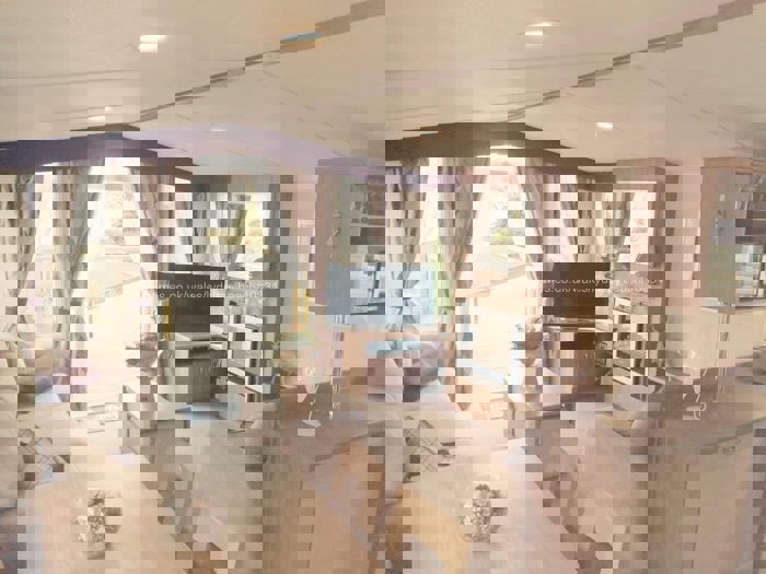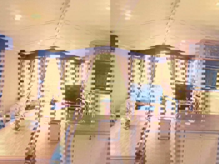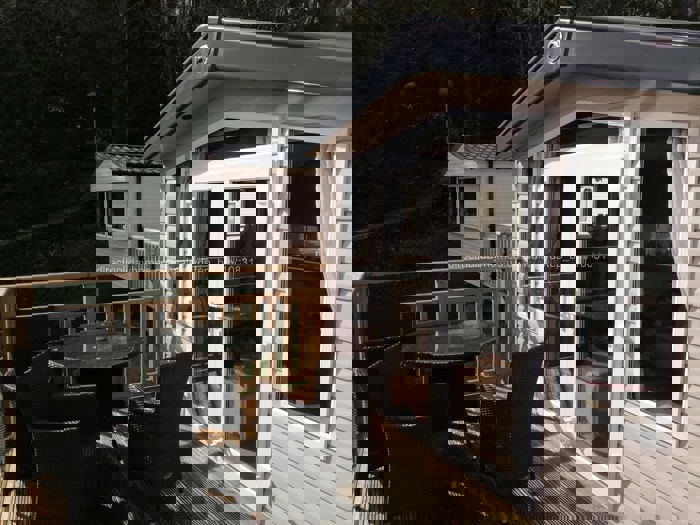 This Prestige Grade holiday caravan is located on a prime pitch with stunning sea views, enhanced by glass-fronted decking to ensure the beautiful coastal outlook remains completely unobstructed. It offers stylish and comfortable self-catering holiday accommodation ideal for families looking for a relaxing UK coastal caravan holiday.