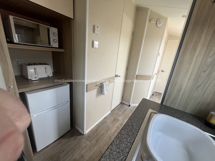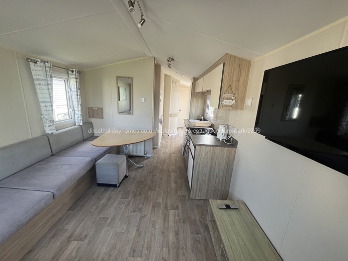 Modern caravan to hire on Millers Cottage Caravan Park in Towyn; a lovely family owned park with direct access to the beach.