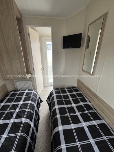 4 berth 2 bedrooms (1double bed in bedroom 1 and 2 single beds in bedroom 2) TVs in all bedrooms iron and ironing board supplied and the caravan has double glazing and central heating