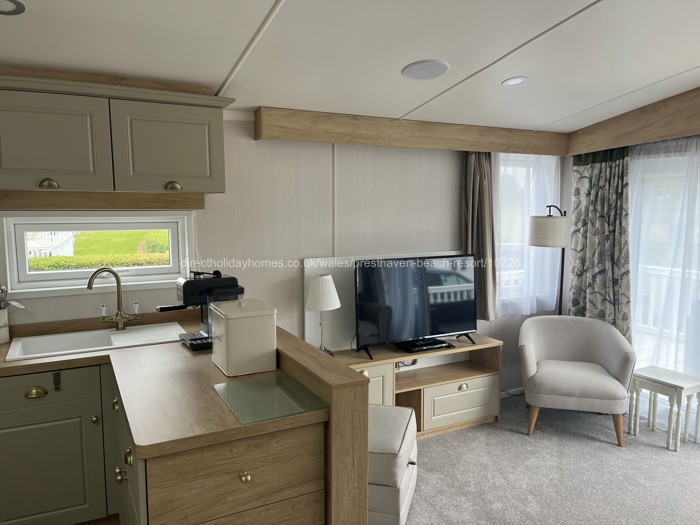 This lovely lodge for hire on Presthaven Sands Holiday Park, is situated on a quiet court area, offering nice views and a large field on which to play games. It’s also just a 3 to 4 minute walk from the main club complex, swimming pools etc.