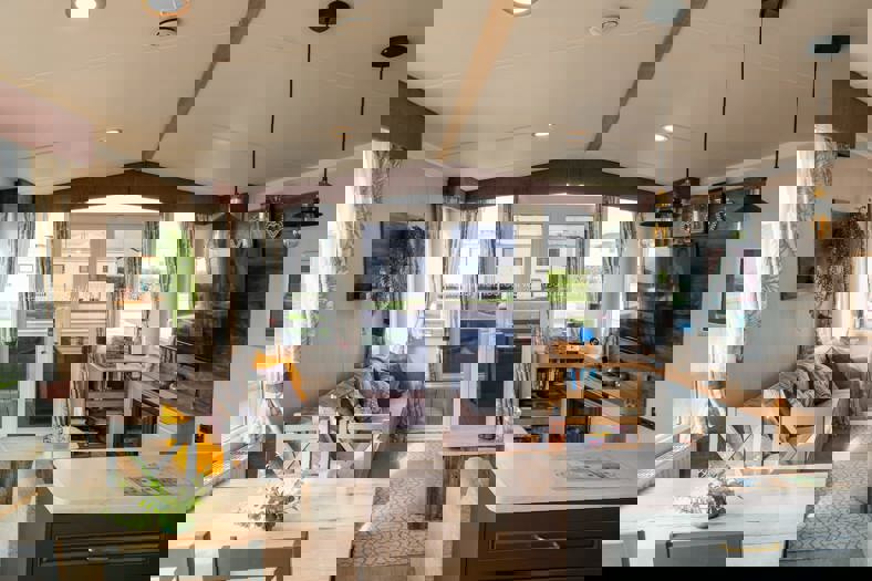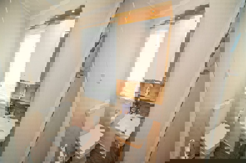 Our 3 Bedroom caravan has lots of space. The first is a double with Smart TV and en-suite toilet with hand basin. The second bedroom has two single beds and Third bedroom has two single beds. Smart TV's, in all the rooms, being served by a shower room, incorporating a toilet and wash basin.