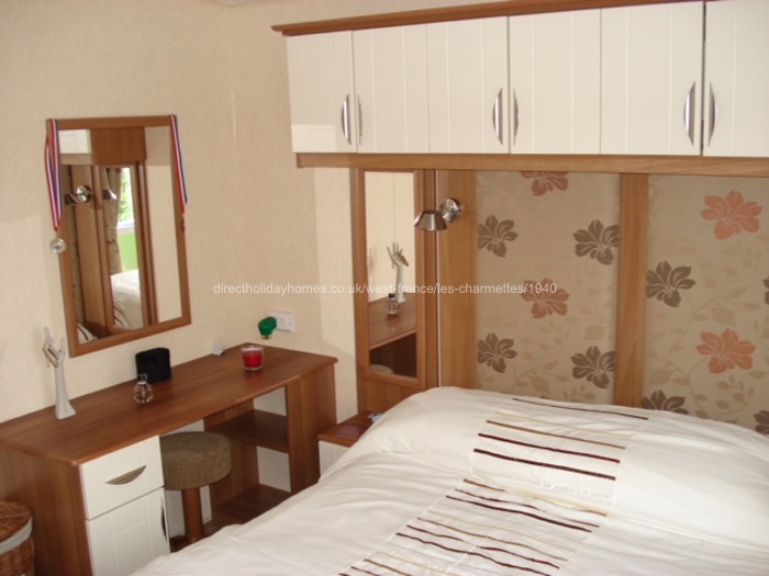 Bedrooms: A spacious main bedroom with queen-size bed, extensive fitted wardrobes, drawers and cupboards, plus an en-suite with WC and hand basin. Second bedroom with twin beds, wardrobe and overhead cupboards. All beds have quilts and pillows, but customers must provide their own bed linen and towels - if you cant, please let us know and we can organise for you.