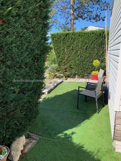 42' home, one of only a small number of extra-large mobile homes on the park, set on a south-facing plot surrounded by hedges for privacy.