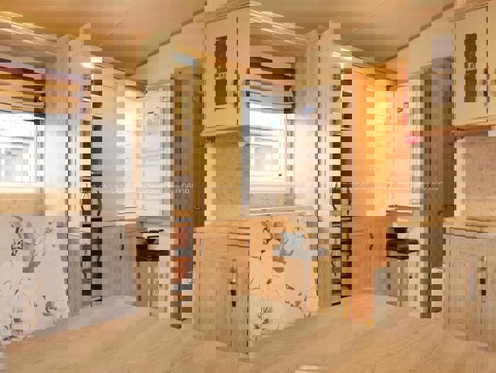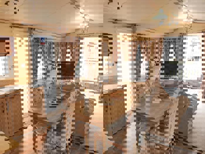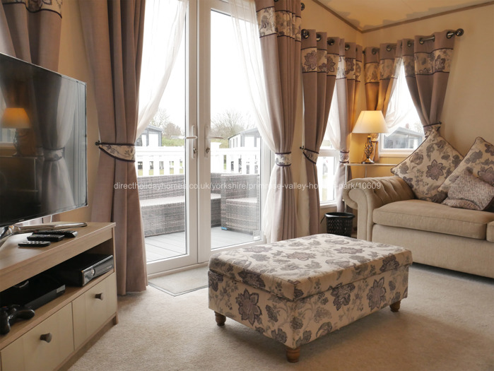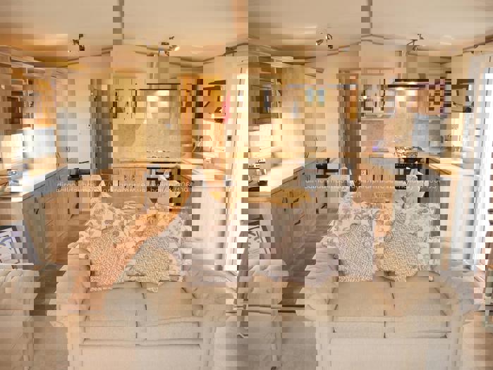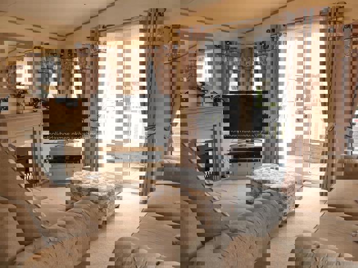 This elegant 'Platinum Plus' lodge at Primrose Valley, is fully double glazed and gas central heated, as well as offering a spacious open plan lounge/dining area. Within the open plan living area is a 42 “ Smart TV and comfortable, free standing sofas.