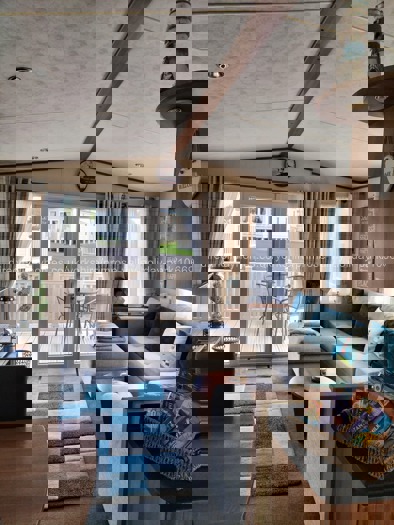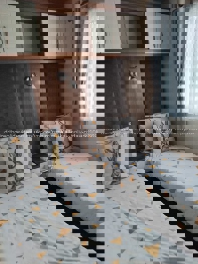 Our pristine caravan has patio doors opening onto a spacious balcony, complete with furniture. We also have a side decking with furniture.