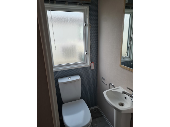 The caravan has one large shower room with toilet and hand basin and an additional toilet/hand basin located next to the master bedroom.