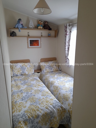 Our Primrose Valley caravan has three bedrooms: one double bedroom with wardrobe and mirrored dressing table with stool; one twin bedded room with TV, wardrobe and mirror; and one further twin bedded room with wardrobe and mirror, but no TV. All bedrooms come with bedding and bed linen, with beds made up ready for your arrival.