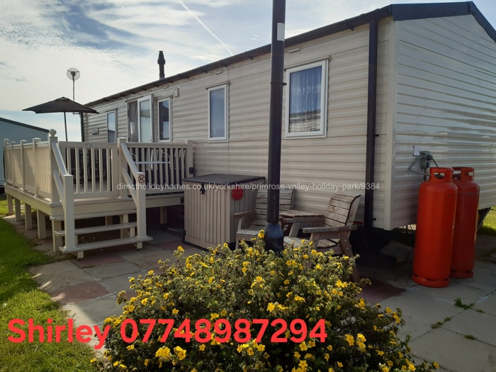 Three bedroom, 8 berth static caravan complete with decking, available for hire on Primrose Valley Holiday Park, situated in the Rose Bank area.