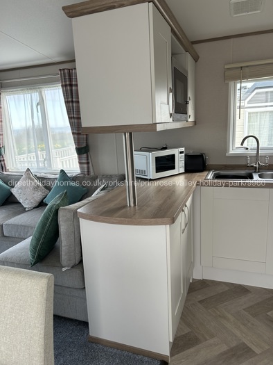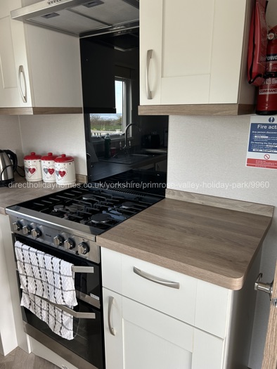Within this double glazed and central heated caravan at Primrose Valley Holiday Park, we have three bedrooms; one master double bedroom with TV and en- suite; and two twin bedded rooms.